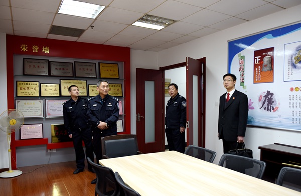张家港法院一行首先参观了我院警营文化长廊、荣誉室及法警体训中心、观看了警营小讲堂专题片,并对我院警营文化建设成果给予了较高评价。