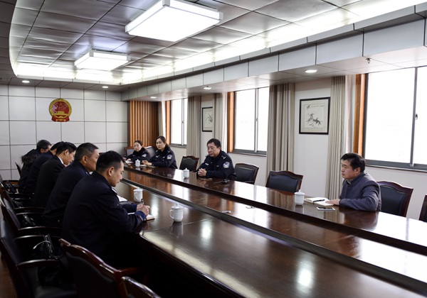 近日,张家港市人民法院法警大队大队长芮卫东、办公室副主任林操场等一行来我院进行警营文化交流,我院法警大队领导及办公室副主任蒋俊峰参与了接待。