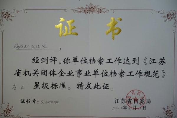 日前,省档案局作出《关于公布2014年度通过档案工作规范测评单位名单的通报》,我院档案工作达到《江苏省机关团体企业事业单位档案工作规范》五星级标准,成为全市法院首批档案工作五星级单位。