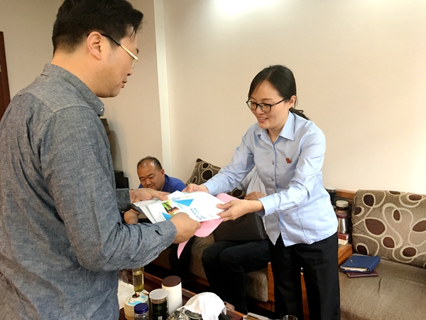 走访的第三家企业是七彩商贸公司,其是泰州最大的酒品代理商。当工商联江主席介绍来意时,企业法定代表人刘总急切地说“法院送服务上门,真是一场及时雨。公司最近正遇上一桩事,不知道该如何通过诉讼途径解决呢。”刘总娓娓道来其去年中秋前与新疆一商家买卖茅台酒的纠纷,称其被骗了二十余万元,这桩纠纷在新疆当地处理得相当棘手。走访人员耐心详细地给予指导解答,刘总称通过思路梳理,立感茅塞顿开,并表示将结合获赔实际效果选择路径,感谢法院走访企业,在经营过程中有法院为企业帮助分析,答疑解惑,企业发展的信心倍增。
